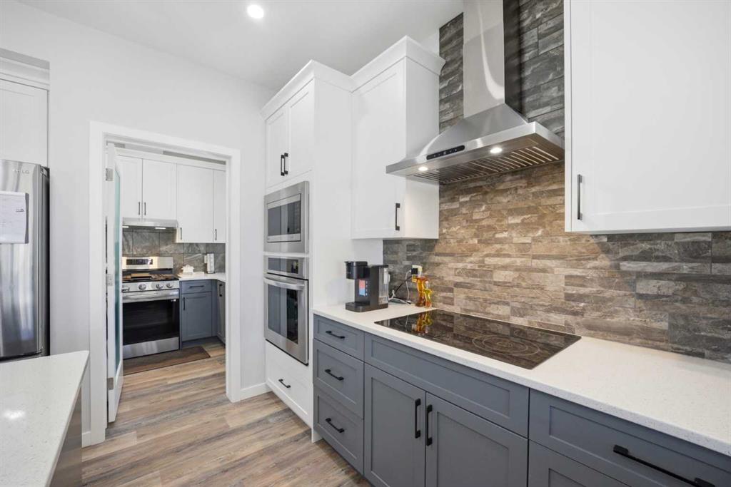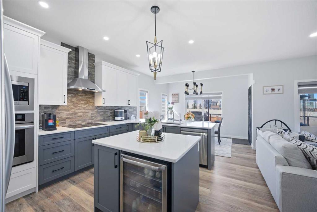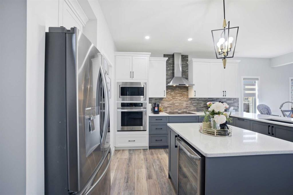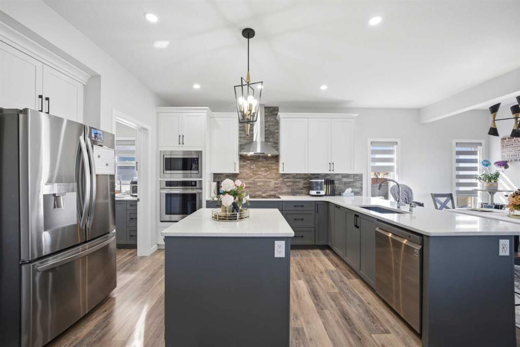 Welcome to this stunning, fully developed 2-storey home located in the sought-after community of Cobblestone SW in Airdrie. Situated on a massive pie-shaped corner lot of approximately 7,200 sq ft, this property offers exceptional space, privacy, and functionality—perfect for growing families or savvy investors. Step inside through the impressive double door entry into a grand, open foyer that sets the tone for the rest of the home. The main floor features a spacious bedroom and a full bathroom, ideal for guests or multi-generational living. The expansive living area is highlighted by a cozy gas fireplace and large windows that flood the space with natural light. The upgraded chef’s kitchen is a true showstopper, complete with built-in stainless steel appliances, a stylish range hood, and a large island countertop—perfect for entertaining. A separate spice kitchen with a gas stove adds extra convenience, while the bright dining area overlooks the backyard. Upstairs, you’ll find a well-designed layout featuring a luxurious primary bedroom with a 5-piece ensuite and walk-in closet. A second primary bedroom includes its own 3-piece ensuite, while two additional bedrooms share a full bathroom. The central bonus room provides extra living space, and a dedicated laundry room adds everyday convenience. The fully developed basement features a separate entrance and includes a legal 3-bedroom suite with 2 full bathrooms, its own kitchen, and laundry—an excellent investment opportunity. Additional upgrades include a water softener , water purification system and 8 feet garage door with tons shelves for extra storage . Enjoy outdoor living in the huge backyard with no rear neighbors, offering beautiful sunset views. The two-tier deck is perfect for entertaining, and there is ample space for RV parking. This exceptional property combines luxury, space, and income potential—all in a prime location close to amenities like schools, shopping plaza, playground, Parks, future recreation arena, church and many more. Don’t miss out on this rare opportunity—book your private showing today! MLS®: A2303098 - Chinook Gate 2 Storey $1,099,900