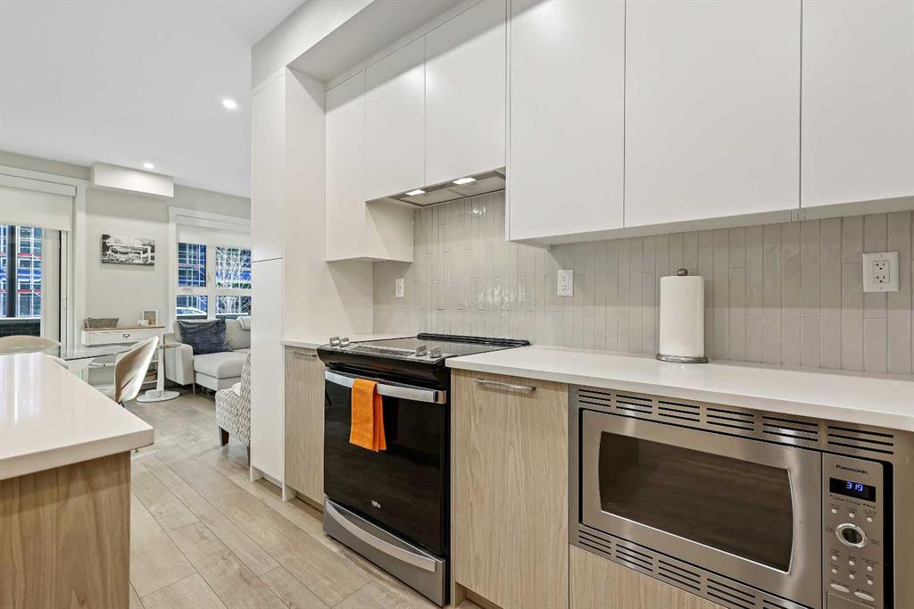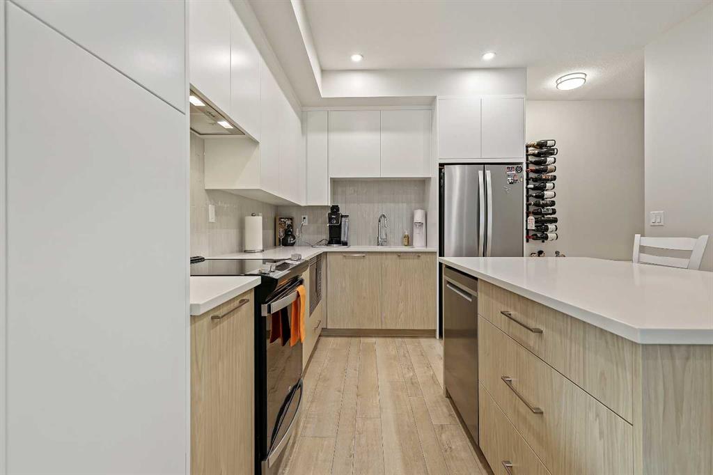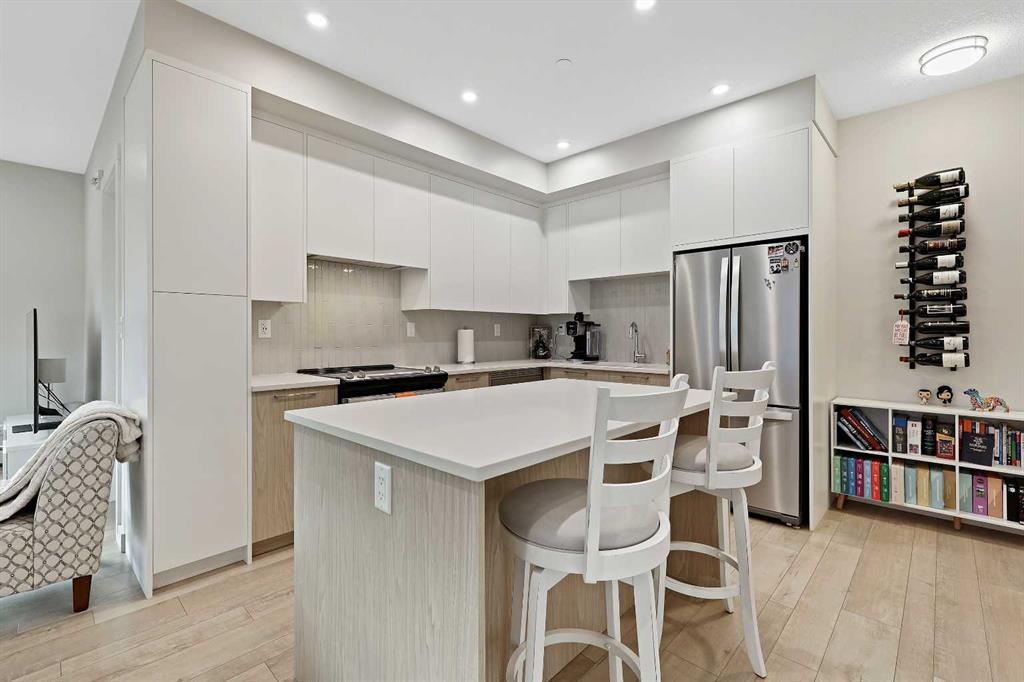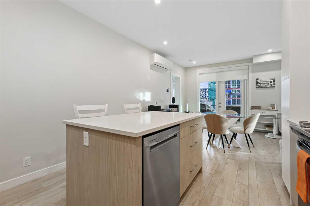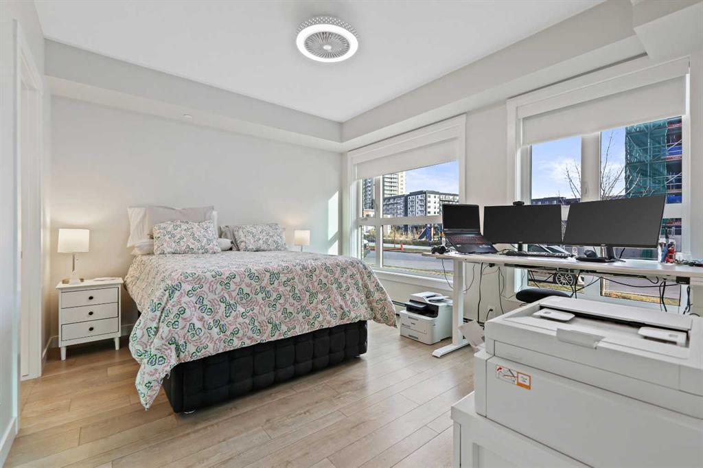 Welcome to Capella in Calgary’s University District! This beautiful main-floor condo perfectly combines modern style, comfort, and convenience in one of the city’s most walkable and desirable communities. Offering nearly 1,000 sq. ft. of bright, open living space, this two-bedroom, two-bathroom home provides an abundance of natural light thanks to its sunny southern exposure. Step out to your spacious south-facing patio, ideal for entertaining family and friends, or just relaxing and enjoying warm, summer nights. Inside, the inviting open-concept layout features a sleek, contemporary kitchen with quartz countertops, a large island with seating, built-in microwave and hood fan, an electric range, and a pantry for extra storage. The kitchen flows effortlessly into the dining and living areas—perfect for entertaining guests or unwinding after a long day. The spacious primary suite features a 5-piece ensuite, including dual vanities, a walk-in shower, soaker tub and private water closet. This home also comes with a good-size second bedroom, a full public/guest bathroom with a tub/shower combo, and a laundry room with space for shelving complete the well-designed layout. Also included with this home: an in-suite wall air conditioning unit, two upgraded ceiling fans, two titled heated underground parking stalls, two titled storage lockers, and access to the on-site fitness center. Enjoy the very best of the University District lifestyle—steps from parks, walking paths, Market Mall, U of C, Alberta Children’s and Foothills Hospitals, and local favourites like OEB Breakfast Co., Village Ice Cream, Monogram Coffee, The Canadian Brewhouse, Save-On-Foods plus so much more! Whether you are downsizing, investing, or seeking a contemporary, low-maintenance home in a thriving community, this home is ready to welcome you! MLS®: A2266626 - University District Apartment-Single Level Unit $659,900